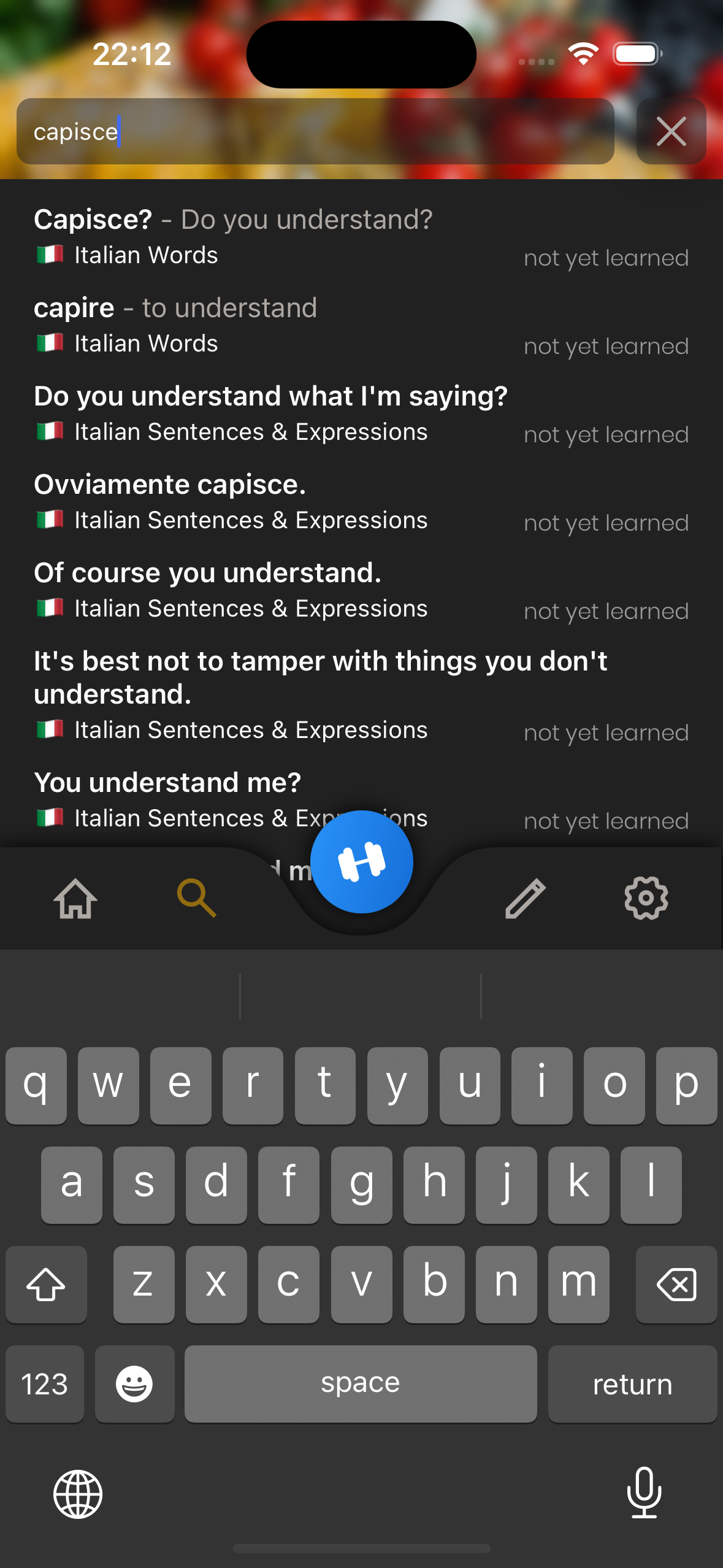 Look up a word you don't know, and add it immediately to your learning queue. Just Italian will make sure you will never forget the word.Dare to order something else than pizza!
