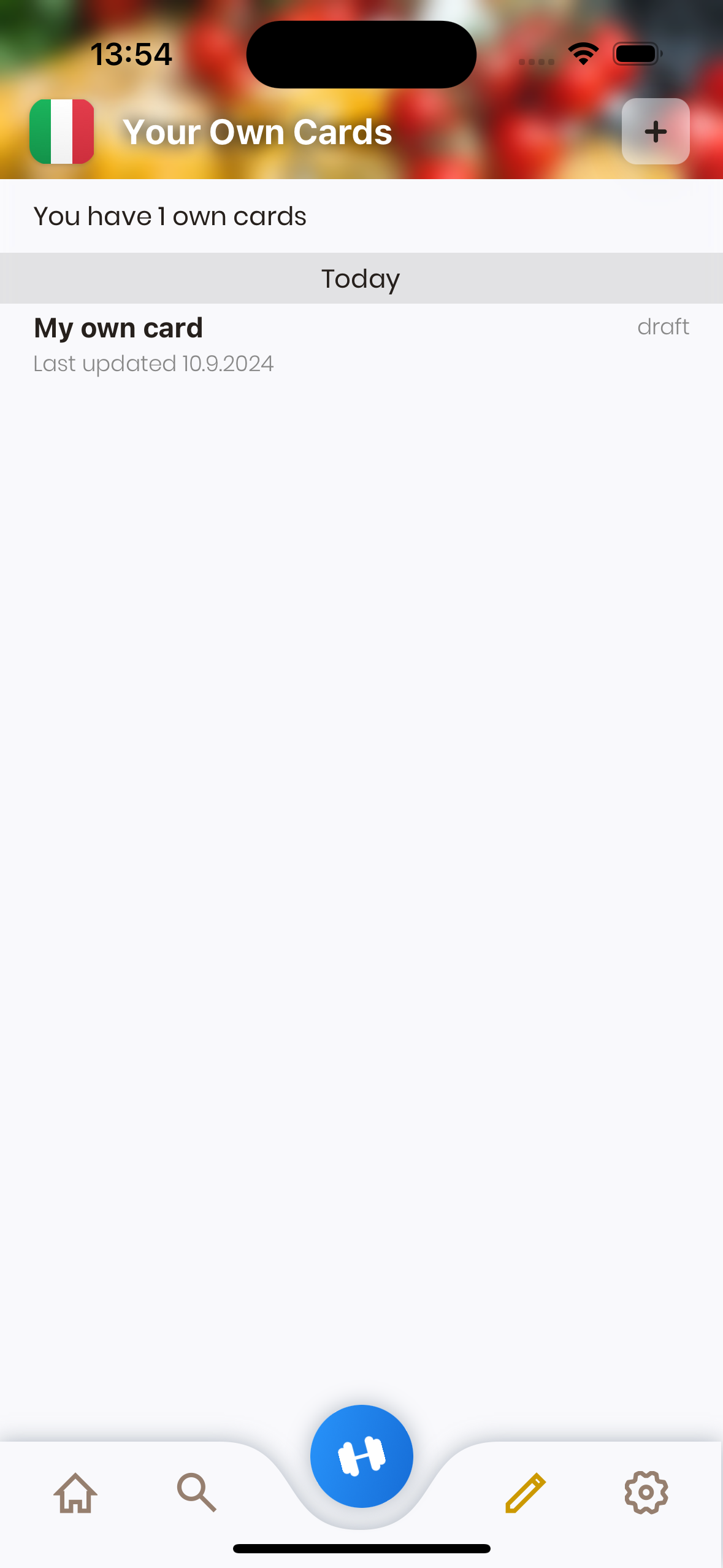 The Own Cards Overview Screen is shown when you tap the pencil symbol in the tab bar at the bottom (1.):
